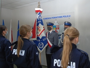 08 marca br. w Komendzie Powiatowej Policji w Gostyniu, z zachowaniem reżimu sanitarnego, odbyła się uroczysta zbiórka podczas której nowo przyjęci policjanci ślubowali: "Strzec bezpieczeństwa Państwa i jego obywateli, nawet z narażeniem życia...” . Rotę ślubowania od policjantów przyjął mł. insp. Piotr Gorynia Komendant Powiatowy Policji w Gostyniu. Słowa roty wypowiedziało 5 policjantów, którzy pozytywnie przeszli wszystkie etapy postępowania kwalifikacyjnego stawiane kandydatom do służby w Policji. Przed młodymi adeptami szkolenie w jednej ze szkół policyjnych.