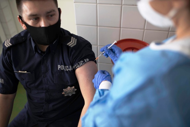 Trwają szczepienia dla wielkopolskich policjantów. Akcja szczepień służb mundurowych odbywa się w pięciu szpitalach węzłowych naszego regionu.
