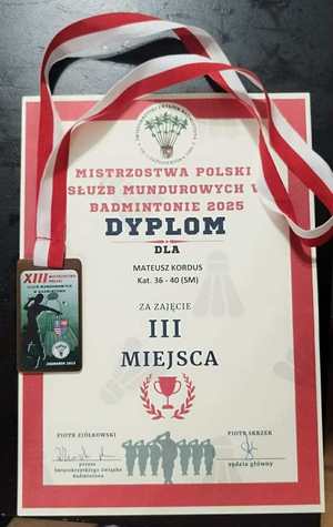 Jednym z wcześniejszych sukcesów mł. asp. Mateusza Kordusa było I i III miejsce w Międzynarodowym Turnieju Badmintona Babolat Cup, który odbył się 15–16 lutego 2025 roku w Policach koło Szczecina.