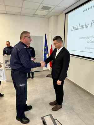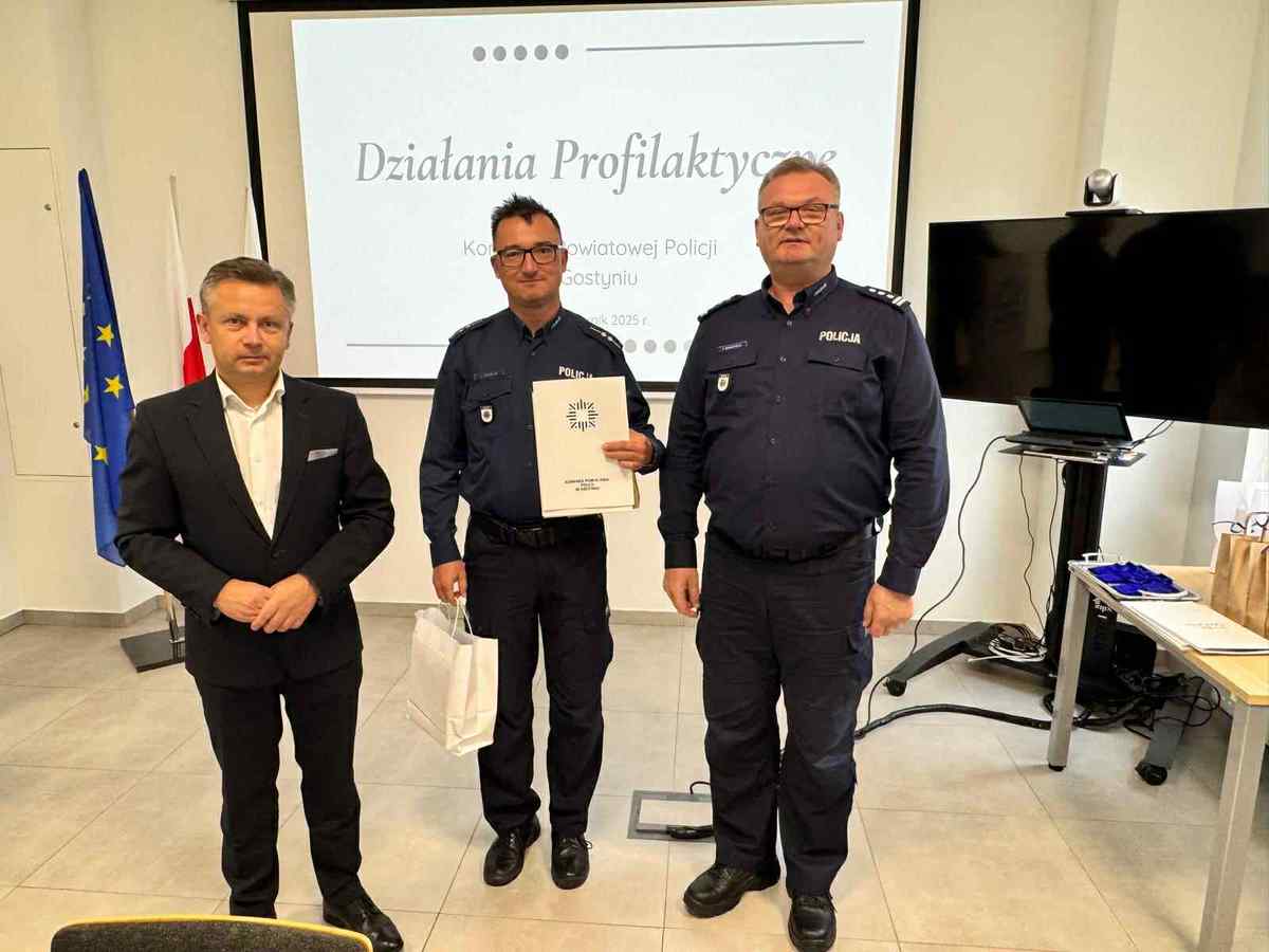 Gratulacje policjantom złożył również Starosta Gostyński Robert Marcinkowski, podkreślając znaczenie współpracy i wspólnego działania na rzecz bezpieczeństwa mieszkańców powiatu.