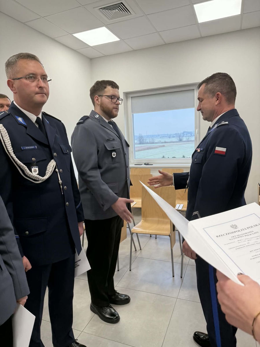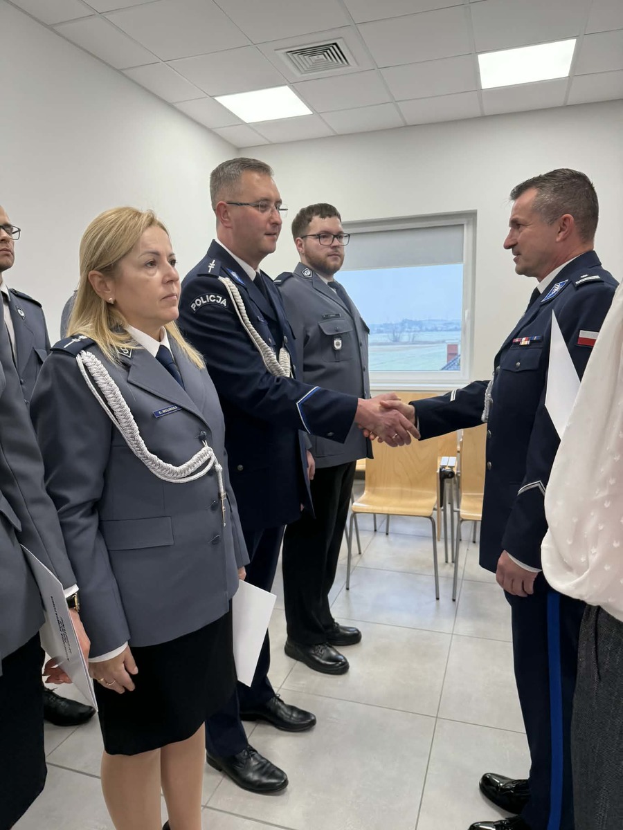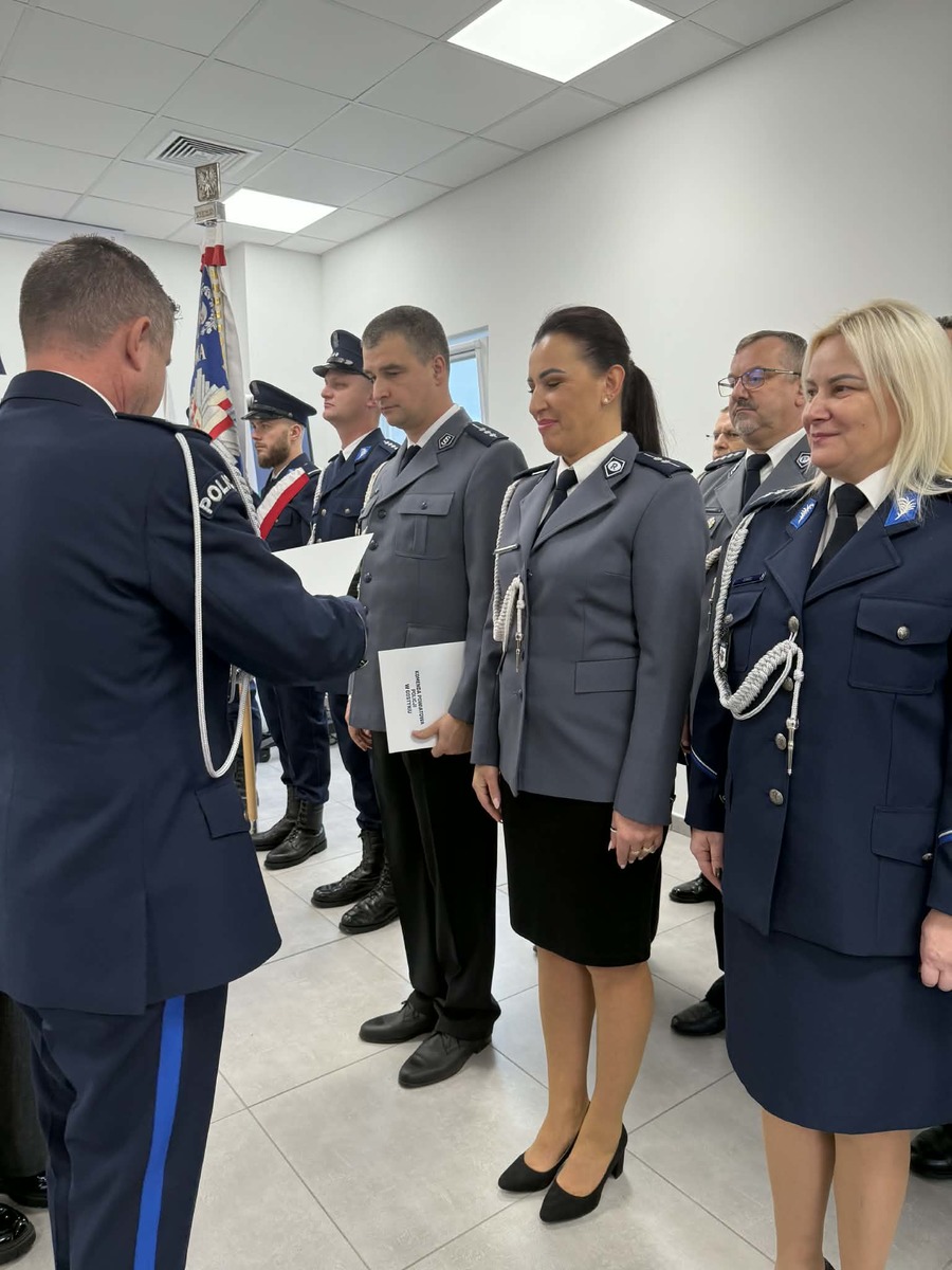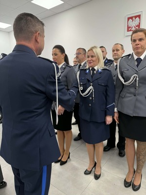 Kolejnym punktem uroczystości było wręczenie rozkazów mianowania na wyższe stopnie policyjne. Awansowani funkcjonariusze odebrali rozkazy o mianowaniu z rąk podinsp. Zbigniewa Krawczyka.