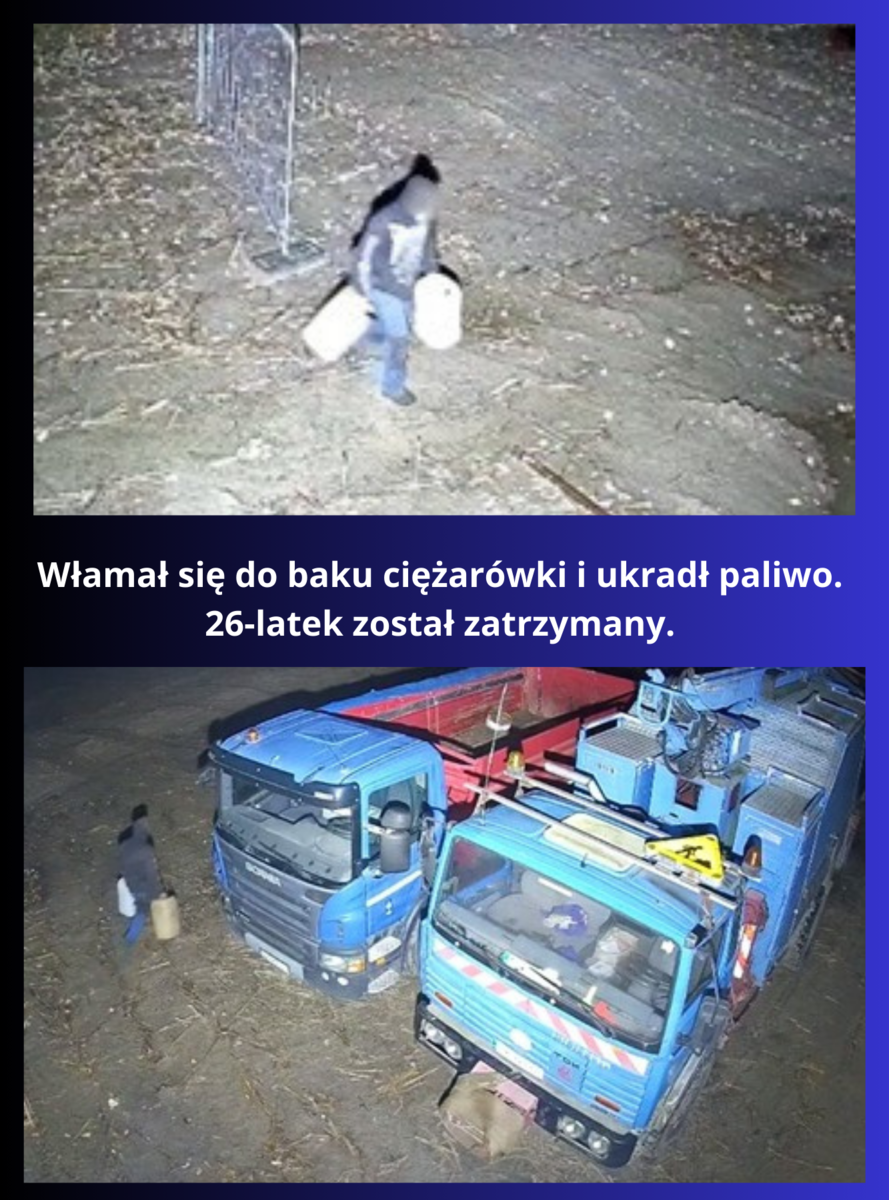 Włamał się do baku ciężarówki i ukradł paliwo, został zatrzymany