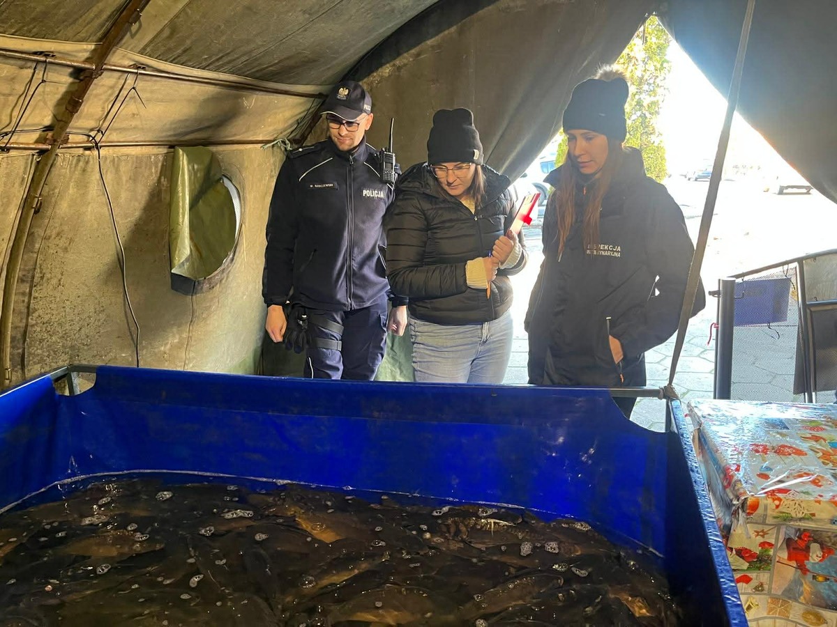Policjanci wspólnie z inspektorami weterynarii sprawdzają punkty sprzedaży karpia