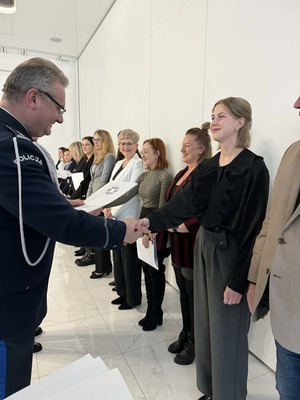 Podczas uroczystości Komendant wyróżnił pracowników gostyńskiej jednostki doceniając ich zaangażowanie i profesjonalizm, który wspiera działania Policji w każdym aspekcie służby.