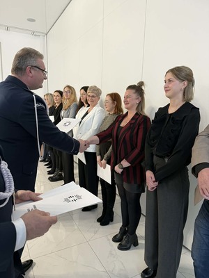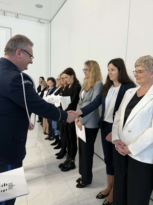 Insp. Paweł Wawrzyniak złożył pracownikom serdeczne życzenia i podziękował za codzienne zaangażowanie w pracę Policji. Podkreślił, że pracownicy cywilni są nieocenionym wsparciem i to dzięki nim jednostka działa sprawnie każdego dnia.