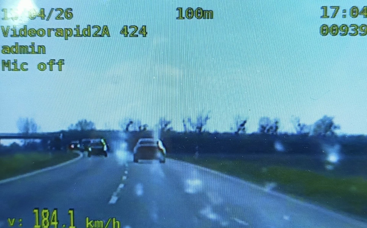 Funkcjonariusze dokonali pomiaru prędkości, który wykazał aż 184 km/h w miejscu, gdzie obowiązuje ograniczenie do 90 km/h.