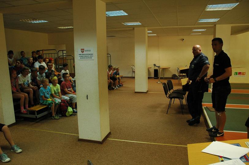Policjanci z Komendy Powiatowej Policji w Gostyniu spotkali się z uczestnikami półkolonii aby porozmawiać na tematy związane z ich bezpieczeństwem. Tematem przewodnim rozmów profilaktycznych było bezpieczeństwo podczas letniego wypoczynku. Mundurowi przypomnieli podstawowe zasady i przepisy związane z ruchem drogowym i wypoczynkiem nad wodą.