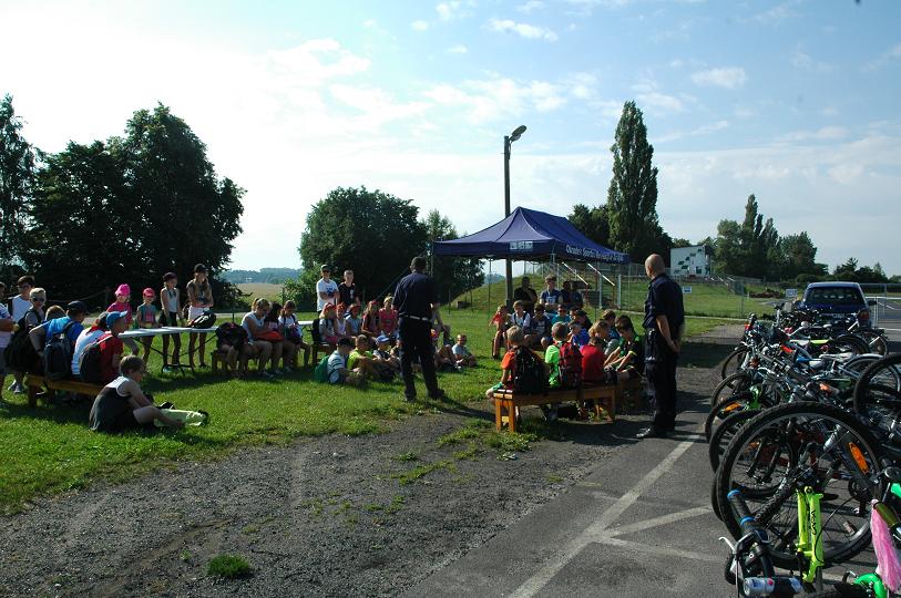 Policjanci rozmawiali z dziećmi na temat bezpieczeństwa podczas wakacji. Spotkanie odbyło się w ramach programu „Kręci mnie bezpieczeństwo…”. W trakcji prelekcji funkcjonariusze opowiedzieli najmłodszym jak należy zachować się nad wodą, w kontaktach z osobami nieznanymi, podczas zabaw na dworze, czy prac polowych. Policjanci przypomnieli również jak należy bezpiecznie jeździć rowerem.