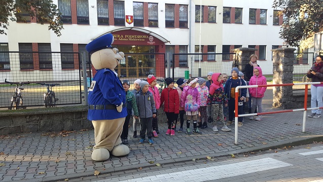 Od początku września policjanci z powiatu gostyńskiego prowadzą spotkania profilaktyczne z najmłodszymi uczniami szkół podstawowych oraz przedszkolach w ramach działań „Bezpieczna droga do szkoły”. Przez ostatnie dwa tygodnie policjantów wspierał gość specjalny – sierż. Pyrek – maskota Wielkopolskiej Policji.