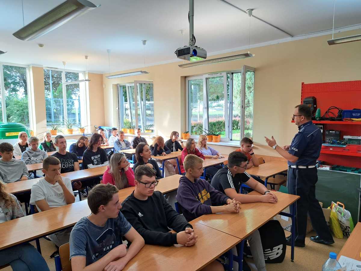 Uczestnicy spotkań nie tylko słuchali cennych rad policjantów, ale również zadając pytania, włączyli się w dyskusję o ich bezpieczeństwie na drodze. Za nami spotkania w dwóch szkołach w Zespole Szkół Ogólnokształcących i Zawodowych w Krobi oraz Zespole Szkół Rolniczych w Grabonogu.