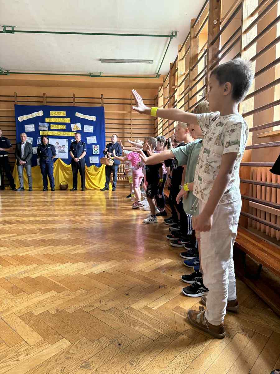 Następnie, o godzinie 11.00, pierwszoklasiści spotkali się z przedstawicielami samorządu i policji, a także odebrali swoje pierwsze odblaski.