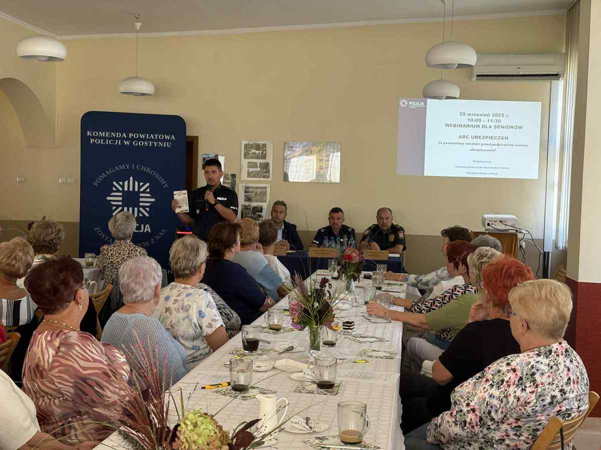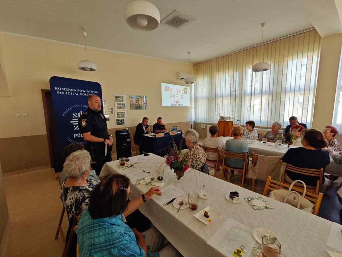 W Klubie Seniora przy Spółdzielni Mieszkaniowej w Gostyniu odbyło się spotkanie poświęcone bezpieczeństwu w ruchu drogowym. Z seniorami spotkali się II Zastępca Burmistrza Gostynia Maciej Czajka, I Zastępca Komendanta Powiatowego Policji w Gostyniu podinsp. Zbigniew Krawczyk oraz Komendant Straży Miejskiej w Gostyniu Dominik Gorynia. Rozmowy dotyczyły obowiązujących przepisów, zagrożeń oraz wspólnych działań samorządu i służb na rzecz poprawy bezpieczeństwa.