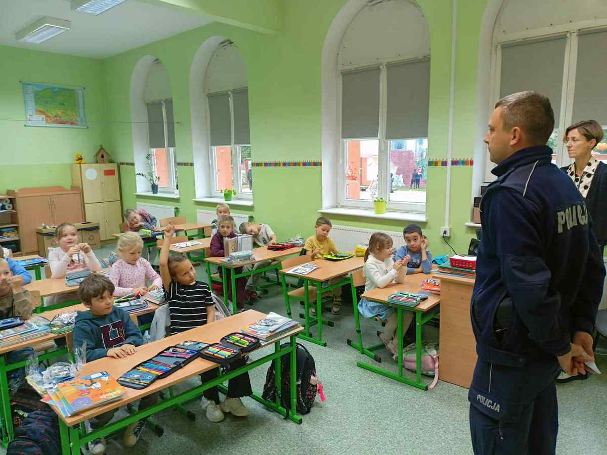 Dzieci dowiedziały się także, jakie zachowania mogą być niebezpieczne w drodze do szkoły i z powrotem. Mundurowi zwrócili uwagę elementy odblaskowe, nawet niewielki odblask może uratować życie, szczególnie jesienią i zimą, gdy szybciej zapada zmrok.