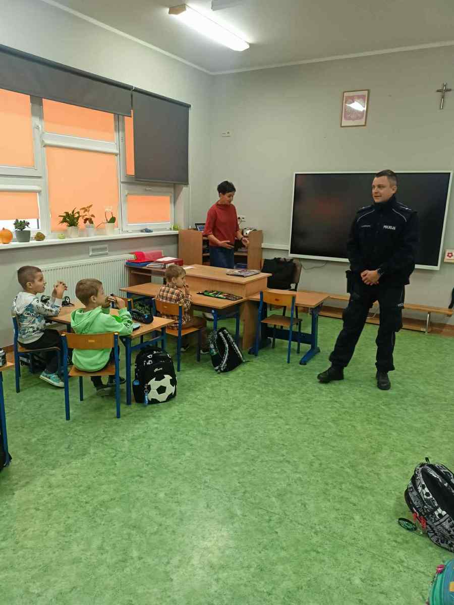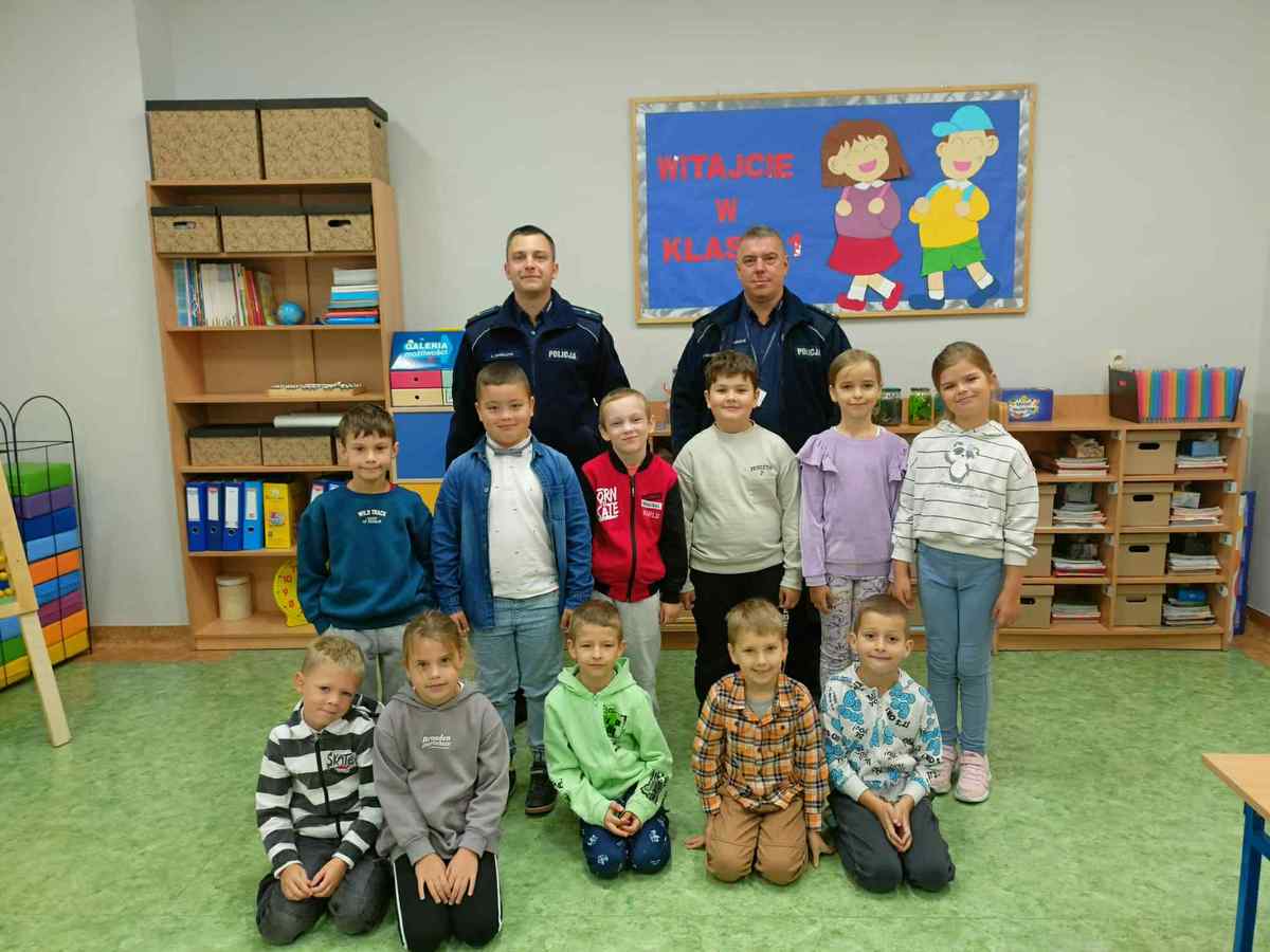 Policjanci dzielnicowi z Posterunku Policji w Borku odwiedzili uczniów klas pierwszych Szkoły Podstawowej w Zimnowodzie. Spotkanie było okazją do rozmowy o zasadach bezpiecznego poruszania się po drodze oraz przypomnienia dzieciom, jak ważne jest noszenie elementów odblaskowych.