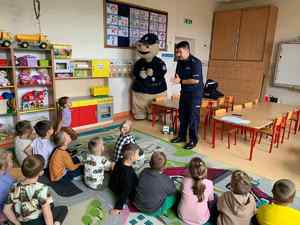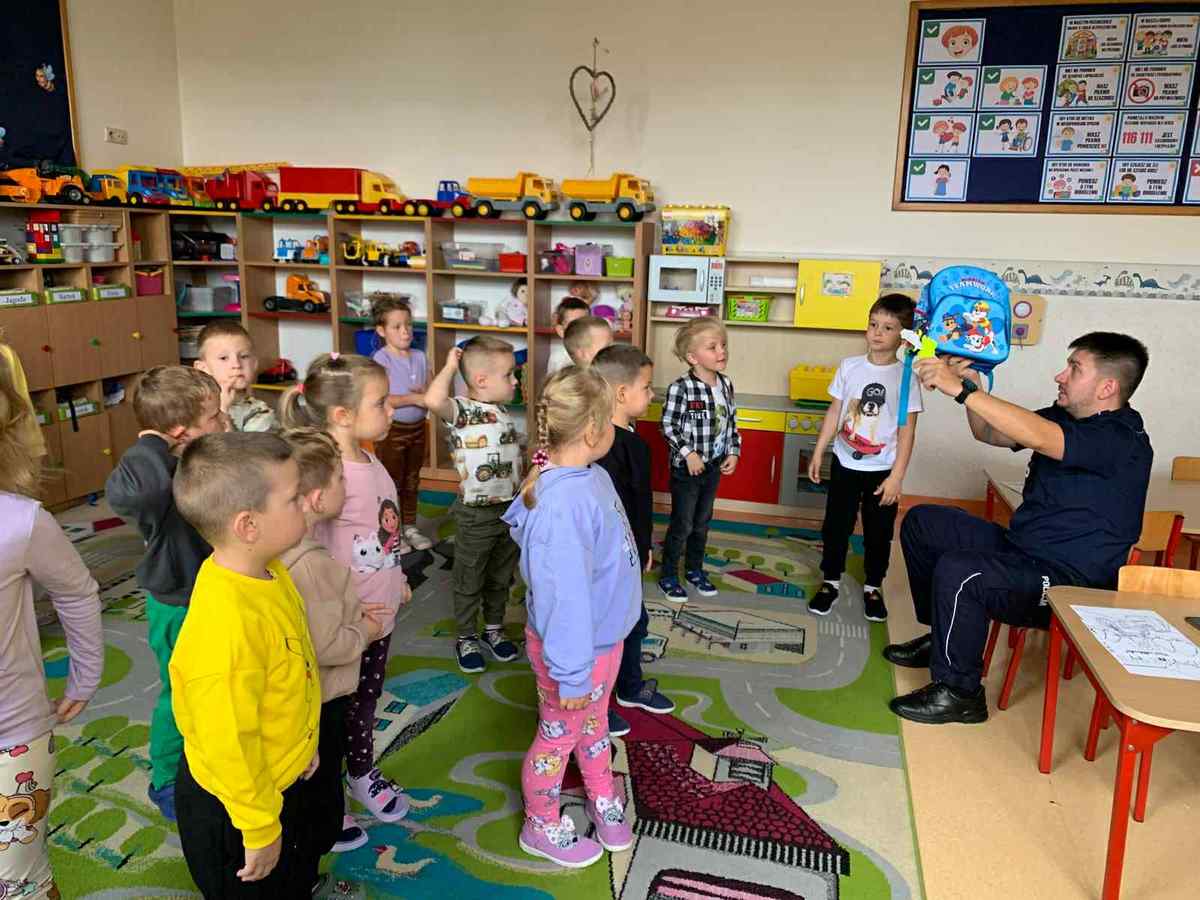 W trosce o bezpieczeństwo najmłodszych gostyńscy policjanci regularnie odwiedzają przedszkola, by poprzez rozmowę i zabawę uczyć dzieci właściwych zachowań w różnych sytuacjach. Tym razem funkcjonariusz zajmujący się profilaktyką społeczną spotkał się z przedszkolakami z Łąki Wielkiej, a towarzyszył mu dobrze znany najmłodszym, sierżant Pyrek.