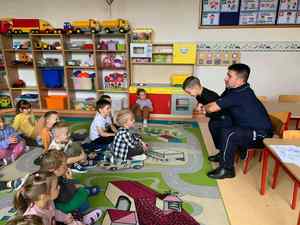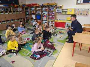 Policjant rozmawiał z przedszkolakami o bezpieczeństwie