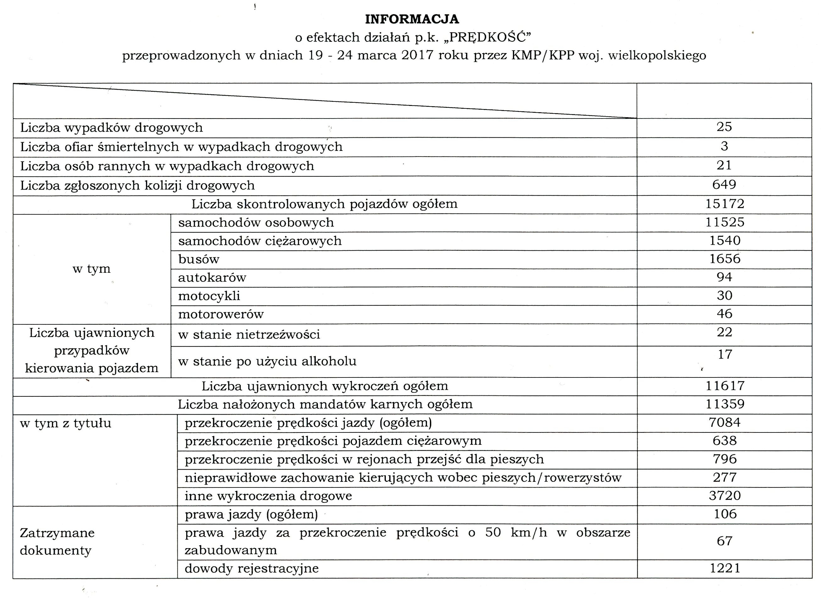 Piątek był ostatnim dniem działań „Prędkość – Zero Tolerancji” prowadzonych na drogach Wielkopolski w okresie od 19 do 24 marca 2017 roku. W tym czasie policjanci z Wydziału Ruchu Drogowego Komendy Powiatowej Policji w Gostyniu skontrolowali 294 pojazdy, ujawnili 270 różnych wykroczeń, w tym 184 przekroczenia dozwolonej prędkości.